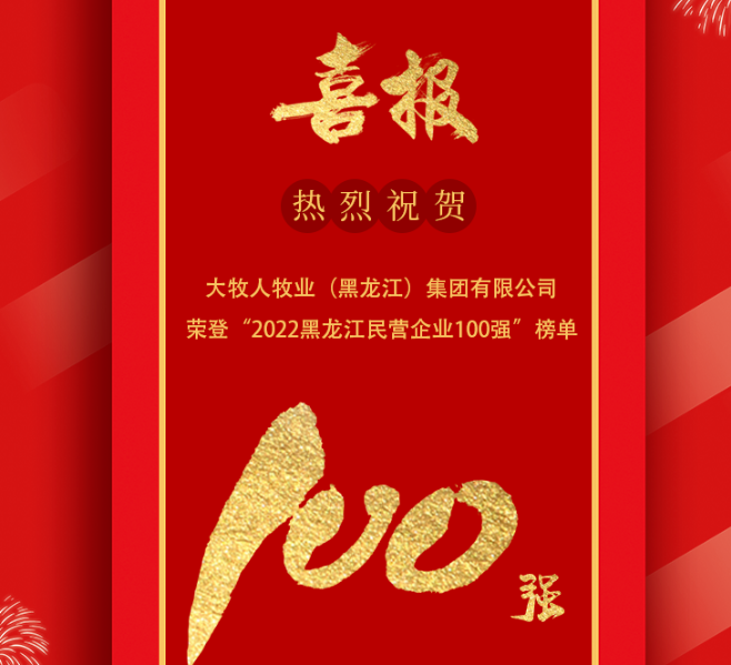 喜報(bào)!大牧人牧業(yè)(黑龍江)集團(tuán)有限公司榮登“2022黑龍江民營企業(yè)100強(qiáng)”榜單